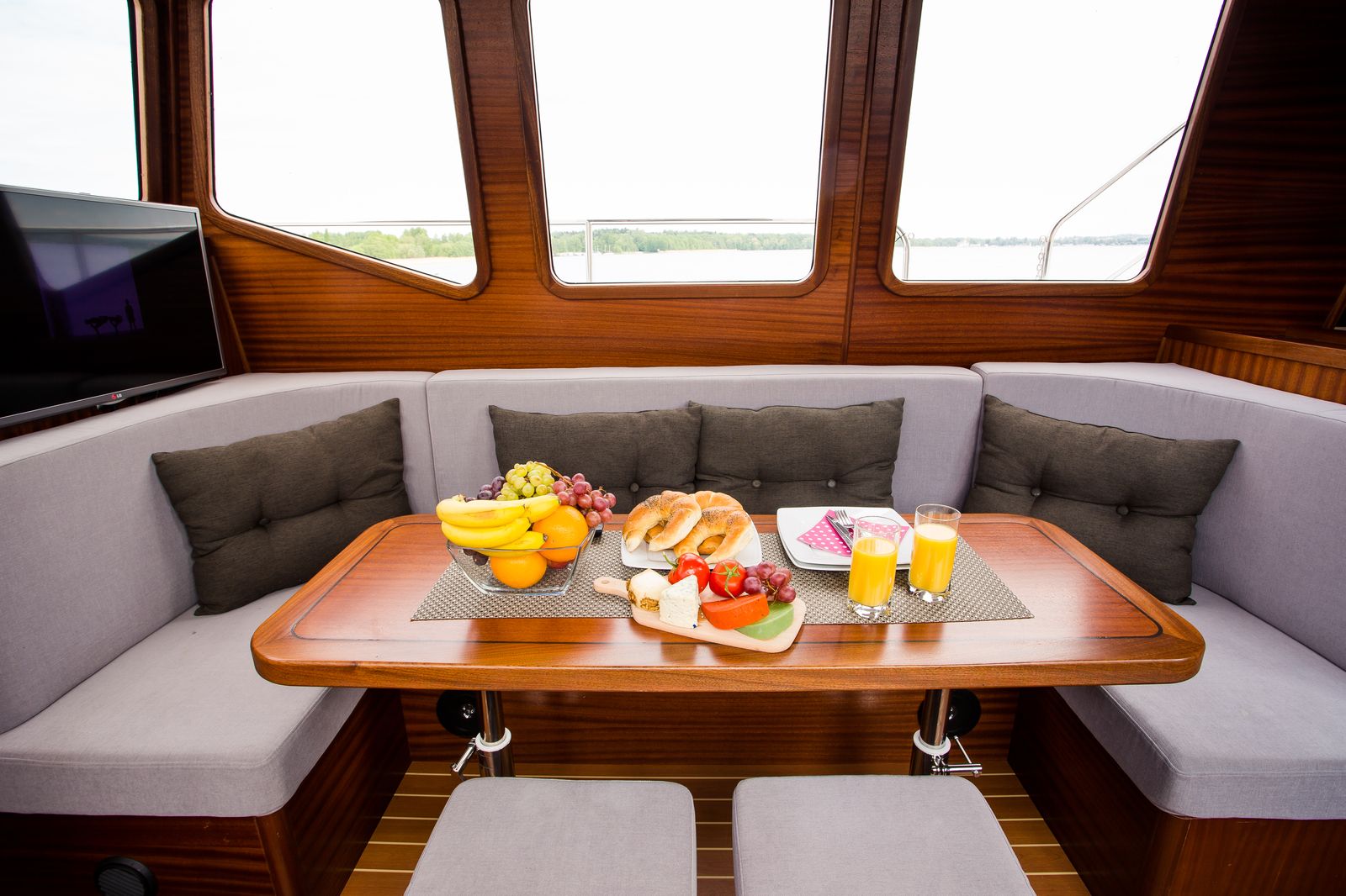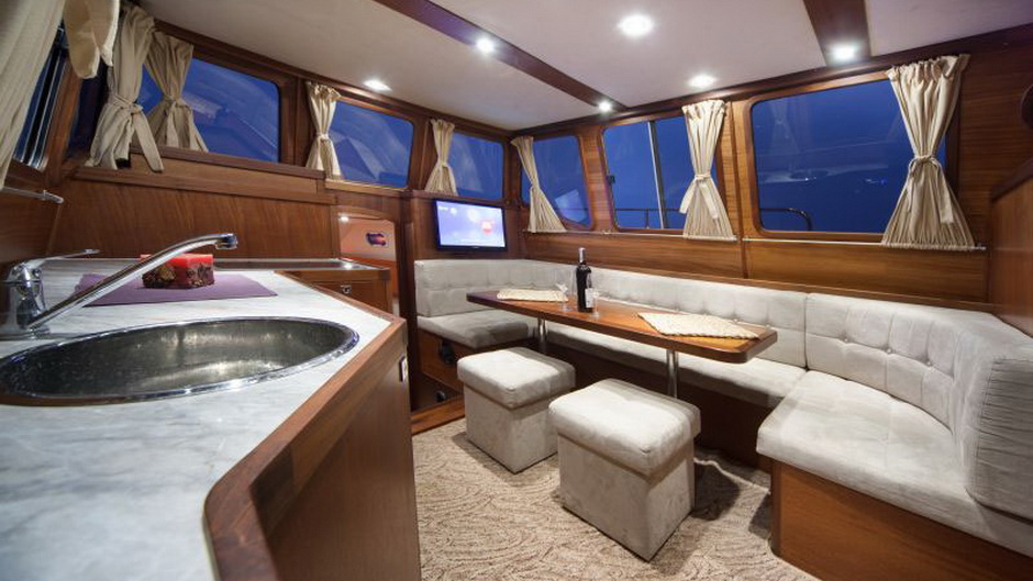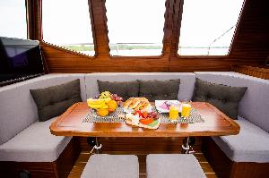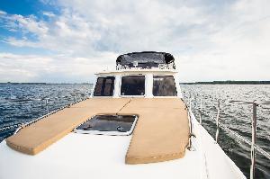 Przestronny, wygodny król houseboatów na Mazurach. Rodzinny, bardzo bezpieczny jacht motorowy . Wyposażony we wszystko by w pełnej autonomii spędzić udany, komfortowy urlop na wodzie. 2 stery strumieniowe, pełna wysokość stania w każdym miejscu na jachcie oraz mocny silnik stacjonarny - 80 KM to najistotniejsze atuty tego jachtu. -
