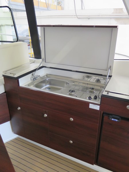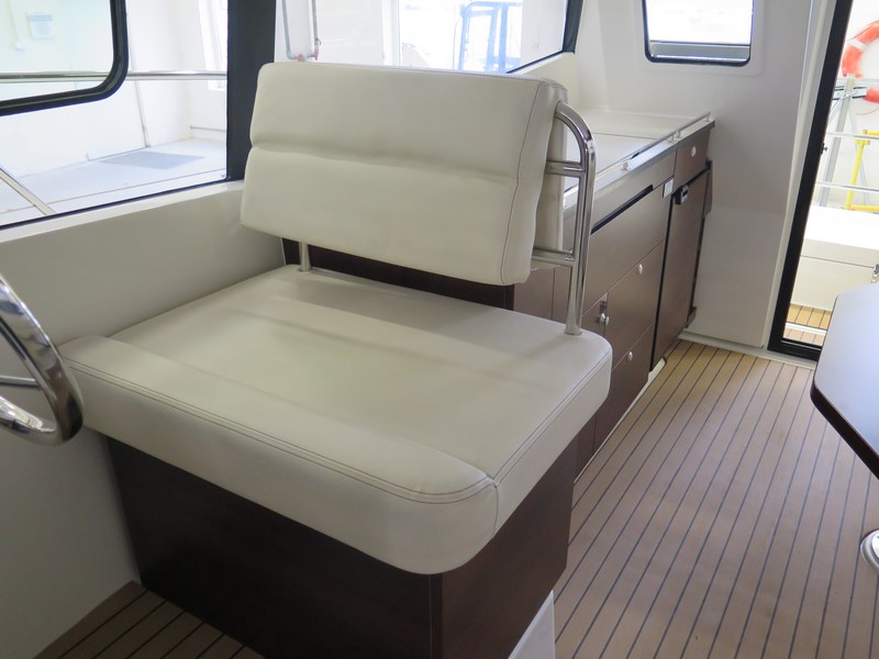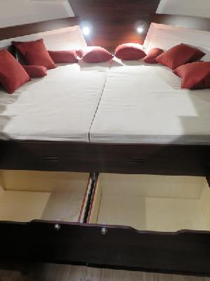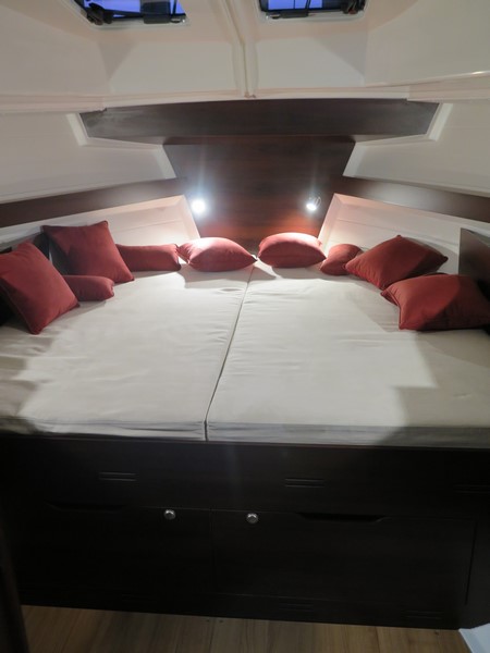 Pierwszy jacht na Mazurach ze zdublowaną sterówką na górnym pokładzie tzw. FLYbridge. Świetnie wyposażony, z kokpitem salonowym na którym przestrzeń została podzielona na strefę dzienną i nocną. Zapraszamy na pokład ! -