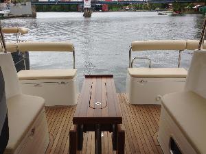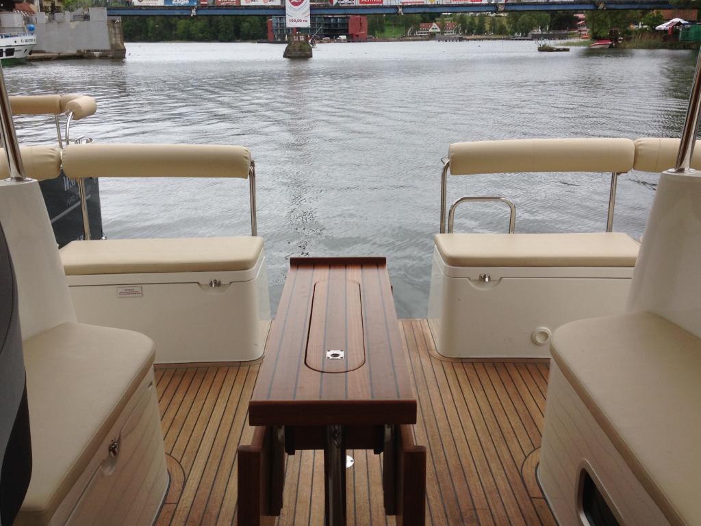 - składany teakowy stół w kokpicie
